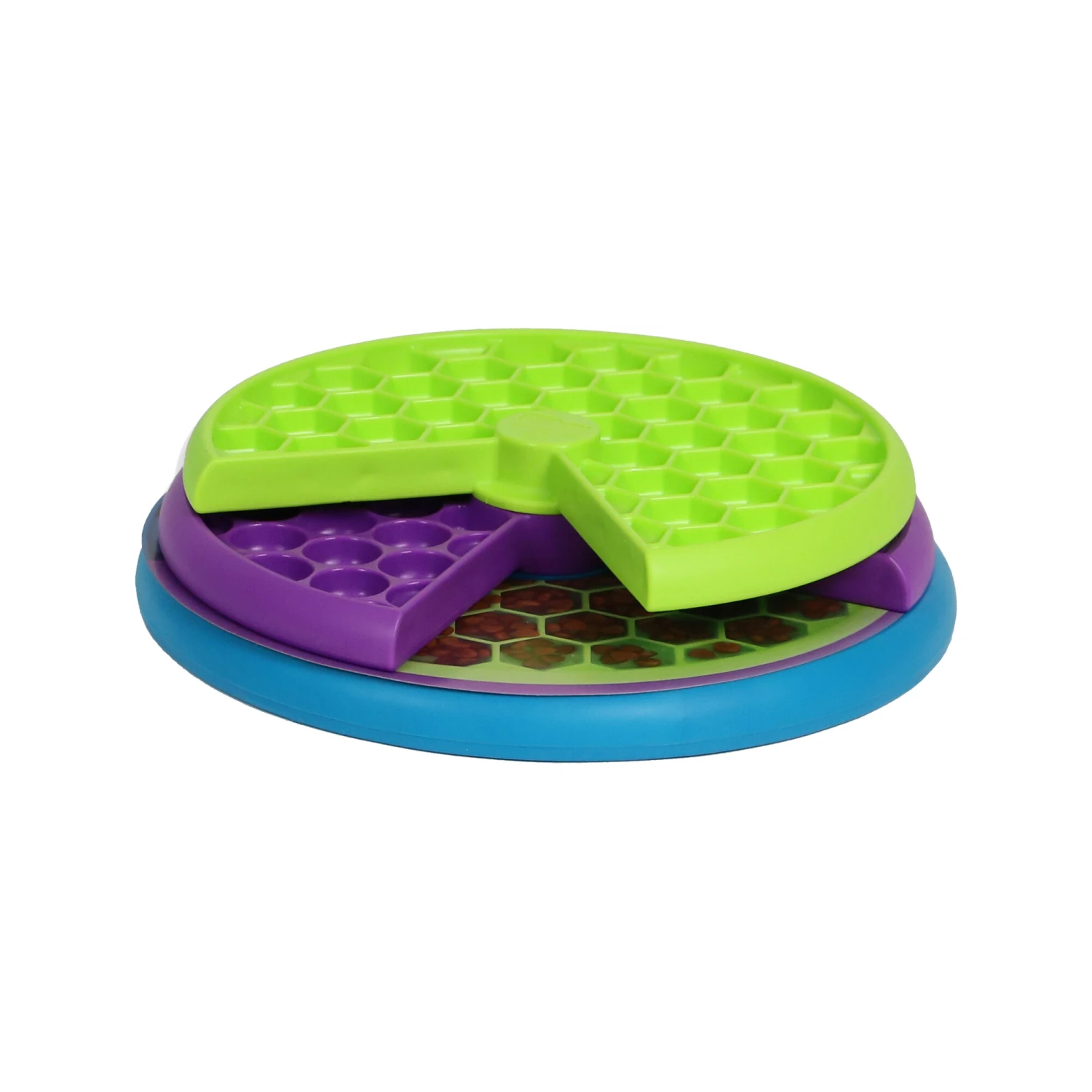 De Lickin’Layers van Nina Ottosson staat voor drie lagen vol plezier! Deze huisdierenpuzzel valt onder moeilijkheidsgraad 2. De Lickin’Layers bestaat uit drie draaiende schijven op elkaar. Deze schijven zijn los van elkaar te draaien en iedere laag bevat figuurtjes waar het eten of andere traktaties in verstopt kunnen worden. Lukt het uw huisdier om al het lekkers te vinden? Geschikt als extra uitdaging voor honden, maar ook voor de te enthousiaste eters.