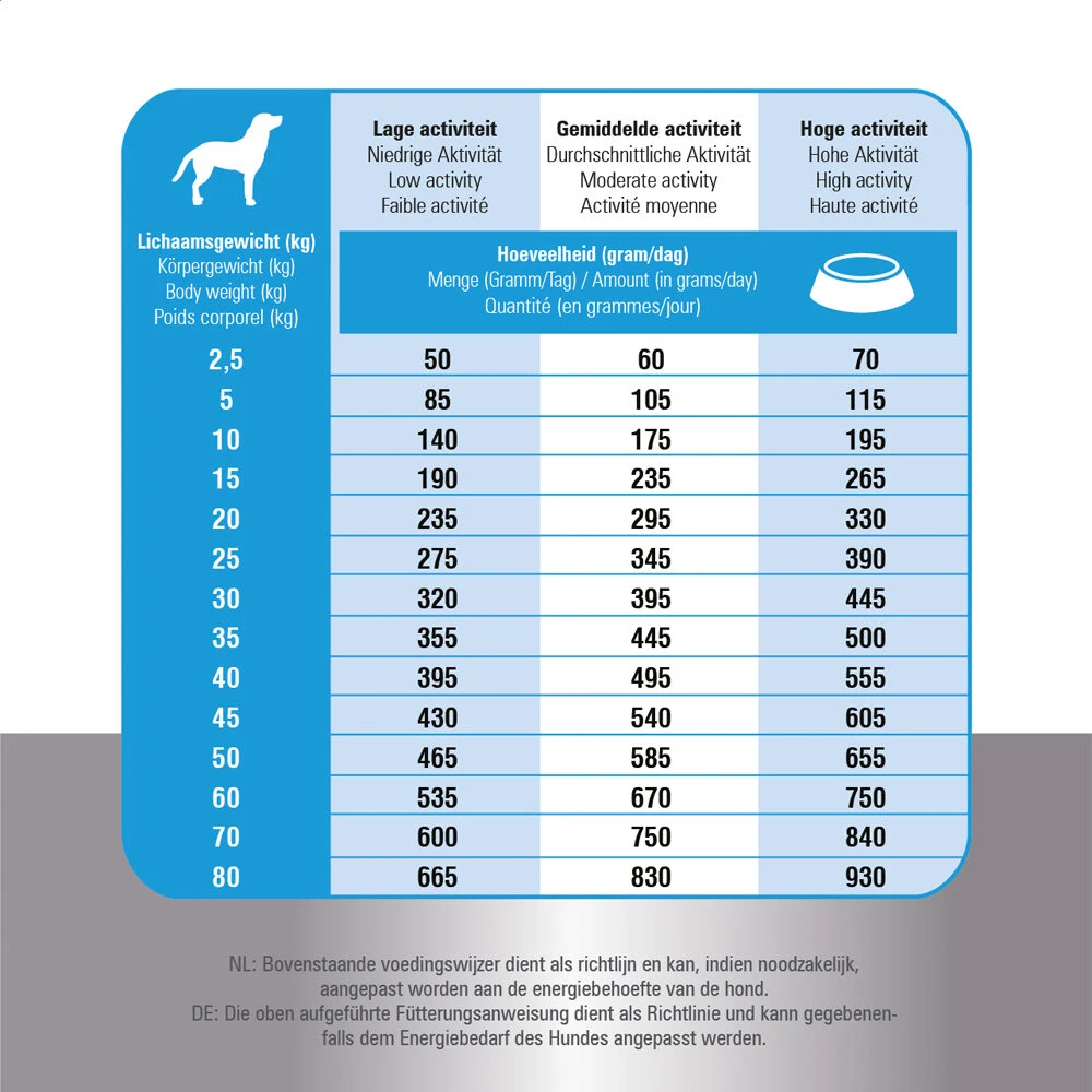 Volwassen honden van middelgrote tot grote rassen tot circa 8 jaar oud.