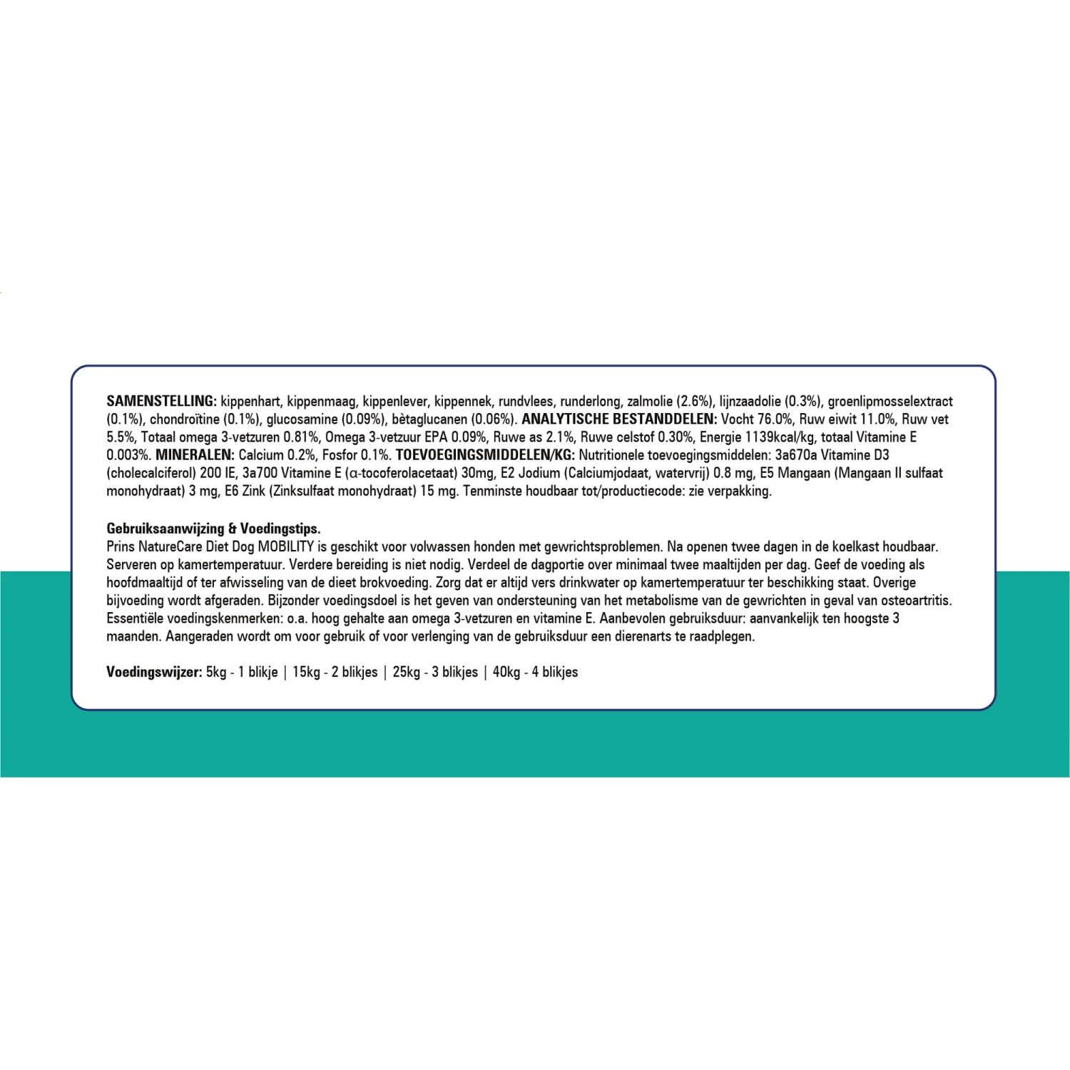 Kippenhart, kippenmaag, kippenlever, kippennek, rundvlees, runderlong, zalmolie (2.6%), lijnzaadolie (0.3%), groenlipmosselextract (0.1%), chondroïtine (0.1%), glucosamine (0.09%), bètaglucanen (0.06%).