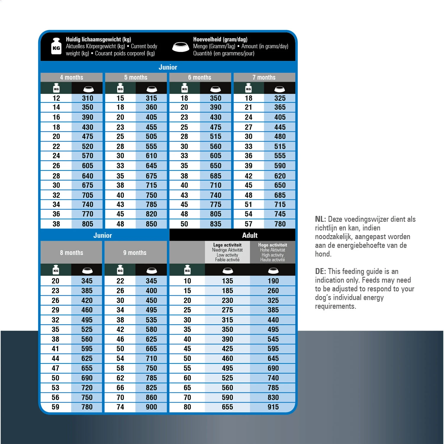 - Bevat een hoog vetgehalte voor jonge en actieve honden