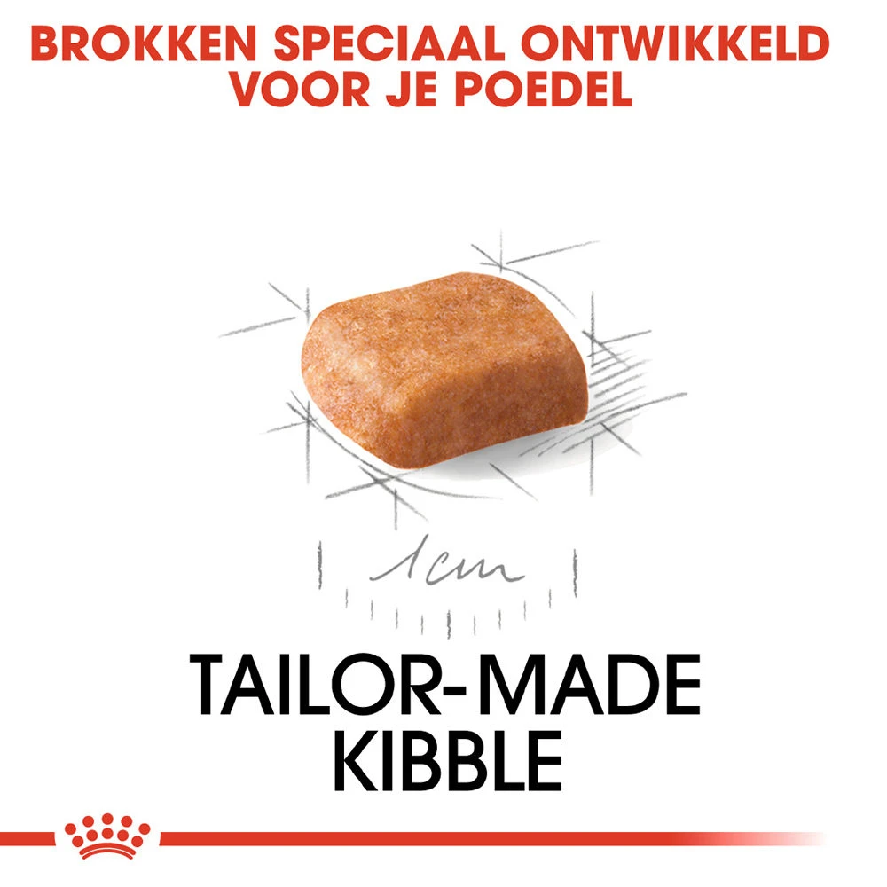 Royal Canin Poodle Puppy is een speciale hondenbrok die ontwikkeld is om de haargroei van uw poedel pup te ondersteunen. Daarbij zorgen de eiwitten in dit voer voor de opbouw en behoud van sterke spieren. Het voer ondersteunt ook de spijsvertering van uw poedel pup. Ook beperkt dit voer de vorming van tandsteen en tandplak. Dit hondenvoer is voor poedels tot 10 maanden. In deze periode gaat uw poedel puppy een intensieve groeiperiode tegemoet. Met behulp van dit voer zal hij uitgroeien tot een levendige, volwassen hond. De grootte van de brok is precies afgestemd op de grootte van uw poedel pup.