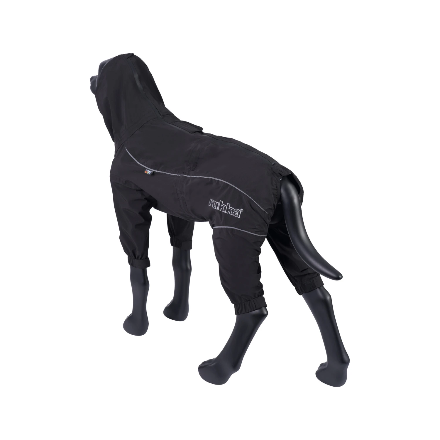 RukkaPets Protect Overall zorgt ervoor dat uw hond droog en comfortabel kan genieten van een heerlijke wandeling. De overall is gemaakt van volledig waterdichte stof, daarbij zijn de naden getapet en heeft de overall een waterdichte ritssluiting. Zo blijft uw trouwe viervoeter in alle weersomstandigheden lekker droog en warm. De stof van de overall rekt mee, waardoor uw hond er zo min mogelijk last van heeft. De ritssluiting aan de achterkant zorgt ervoor dat de overall gemakkelijk aan te trekken is. Bij elk beenuiteinde zit er een klittenbandsluiting, waardoor deze gemakkelijk aan te passen is. Ook zit er een sleuf aan de bovenkant, waardoor u de riem vast kunt maken aan de halsband. Is de overall vies geworden? Geen probleem! U kunt de overall wassen in de wasmachine en hij droogt snel. Voor extra veiligheid tijdens de wandeling zijn er ook reflecterende banden op de overall aangebracht.